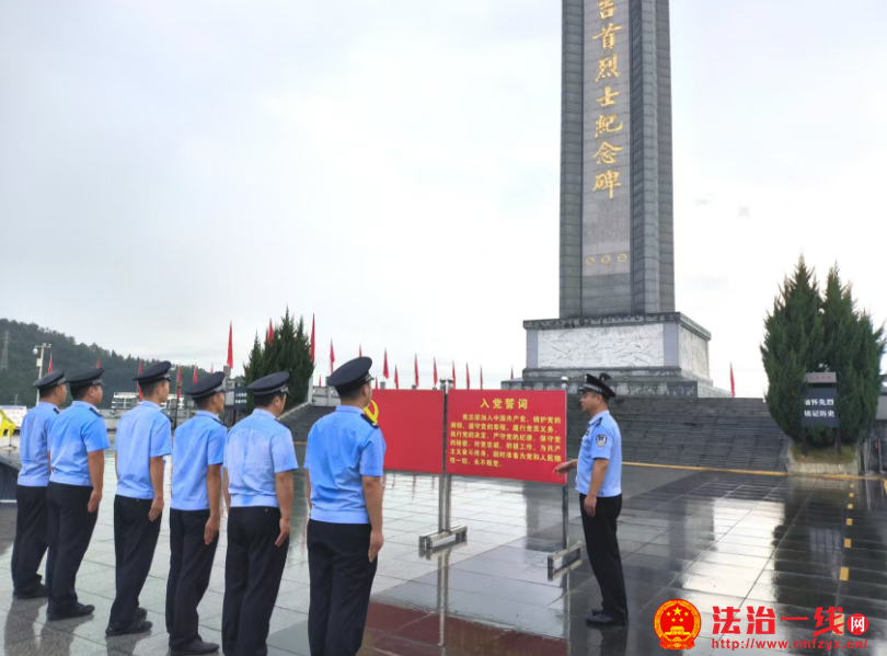 在鲜艳的中国共产党党旗前,民警高举右拳庄严宣誓,重温入党誓词,铿锵有力的誓言回荡在公园上空,充分展现了铁路公安民警传承英烈精神、坚守初心使命、护航铁路安全的坚定决心。(通讯员:龙泽威 刘亚平)