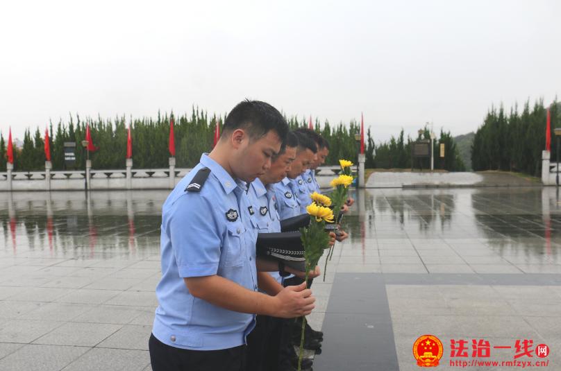 活动现场,民警们身着警服整齐列队,在烈士纪念碑前庄重脱帽肃立默哀,向英烈致以深切哀悼。随后,民警们依次向纪念碑敬献鲜花,寄托对革命先烈的崇敬与缅怀之情。