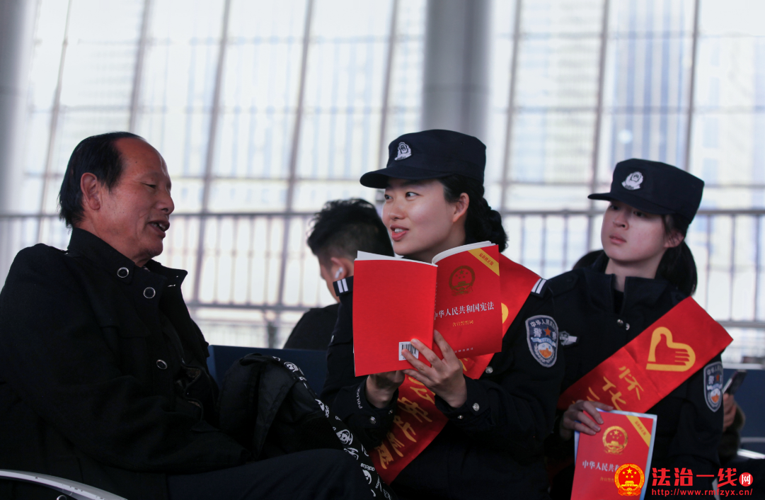 今年12月1日至7日,是我国的“宪法宣传周”,为了做好全民宪法宣传,怀化站派出所民警与车站客运职工组成了一个宪法宣传小分队,走近旅客大力宣传宪法知识。