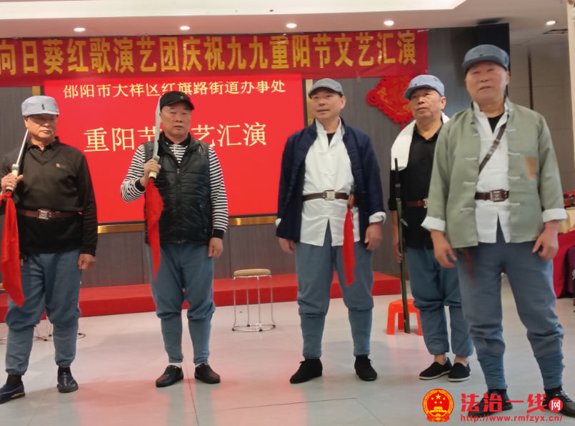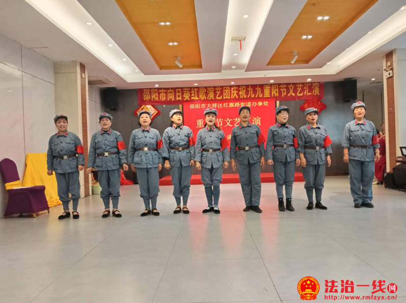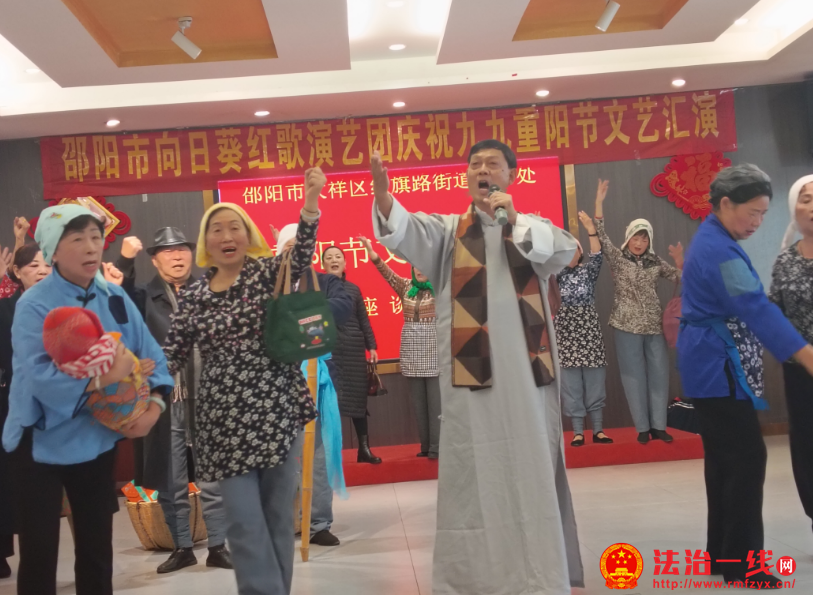 大祥区红旗街道办红旗社区“向日葵红歌演艺团”为庆祝九九重阳节而精心组织奉献了一曲曲经典红歌。他们以不同曲艺,多题材,多方式表演,卓有穿越时空感情,把观众带回战火纷飞的年代,再现英雄楷模。