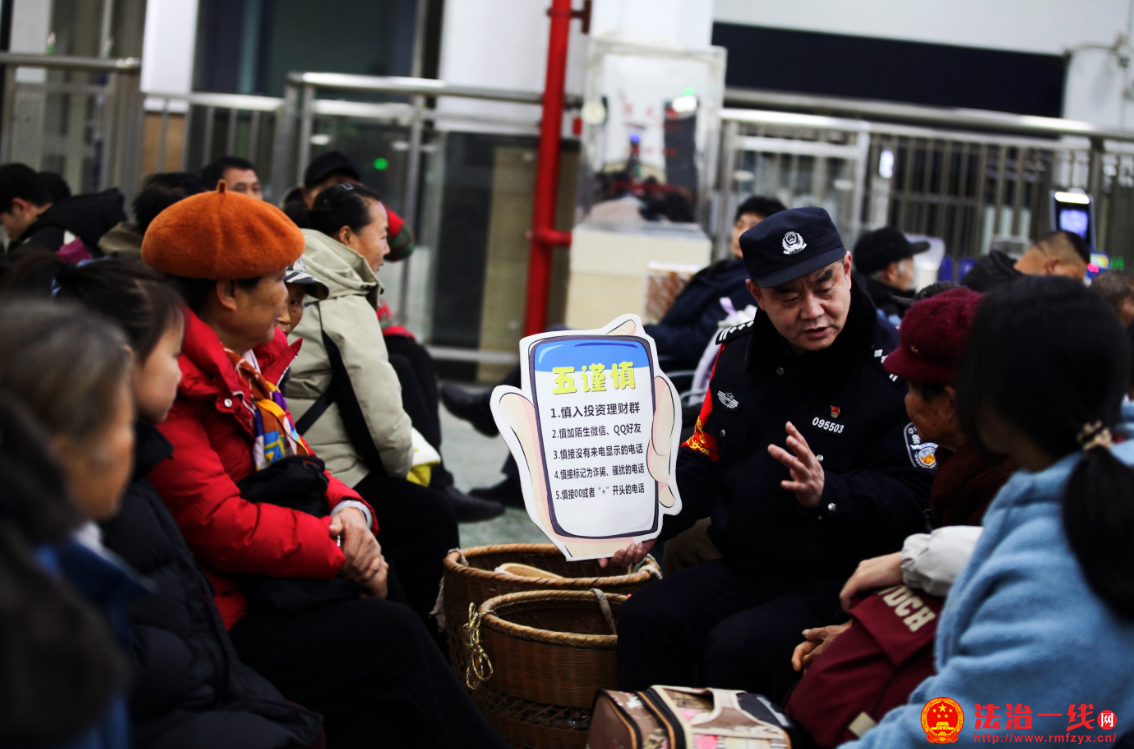 同时,民警还向旅客宣传防骗知识,告知他们在旅途中不要和陌生人亲近并与他们认“老乡”,不接收他们给的饮料和食品,不接收可疑的电话,不在手机上点开来路不明的链接,防止上当受骗。