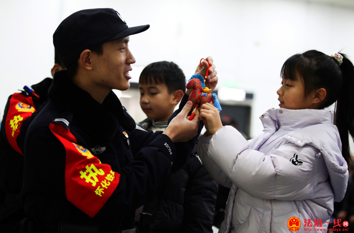 当时,一名跟随父母乘车的孩子,因为忘记带了自己心爱的玩具,不停的哭泣,民警知道情况后进行安慰,并送上骏马形的玩具,祝他们马年吉祥、快马加鞭平安回家。孩子拿到玩具立马转泣为笑,并说出了“谢谢警察叔叔”的童语。(通讯员:刘亚平 李鉴)